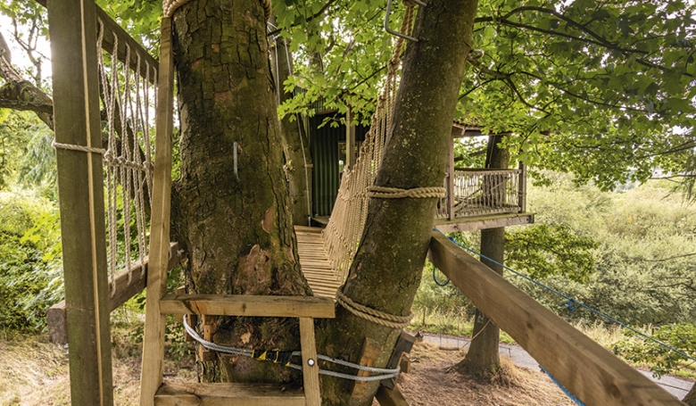WHAT The treehouse is wallpapered in Beano magazines, with hessian potato sacks repurposed for cushions and blinds – though you’ll find only the finest crisp bed linen and fluffy towels. Feel at one with the wood in your cosy bed in the roof, with the gentle creaking of timber to lull you to sleep, a different view from each window and a pot belly stove to warm you. Cross the rope bridge to stoke the fires for s’mores and camp cooking in the Dutch oven, or use the practical kitchen for more adventurous suppers. Wash up to views of the moors from your own private wood-fired hot tub – you’re off-grid, but there’s hot and cold running water straight from the hills (plus a great shower and a compost loo). Everything on camp is yours to use, including a gypsy caravan which doubles as both dining room and second bedroom. Bring headtorches for nocturnal rambles around camp and bread from the village shop to enjoy with the homemade marmalade in your hamper – Margaret and Jenny run a food company, so you’ll be well fed here. canopyandstars.co.uk