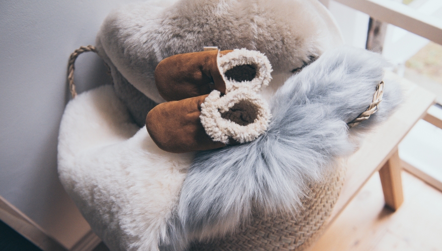 The benefits of sheepskin are well known for warmth and comfort however the naturally thermostatic nature of the fleece makes sheepskin thermostatic so ideal in summer too . Sheepskin is naturally moisturising thanks to the lanolin in the fleece which helps to soothe skin calm children with eczema.